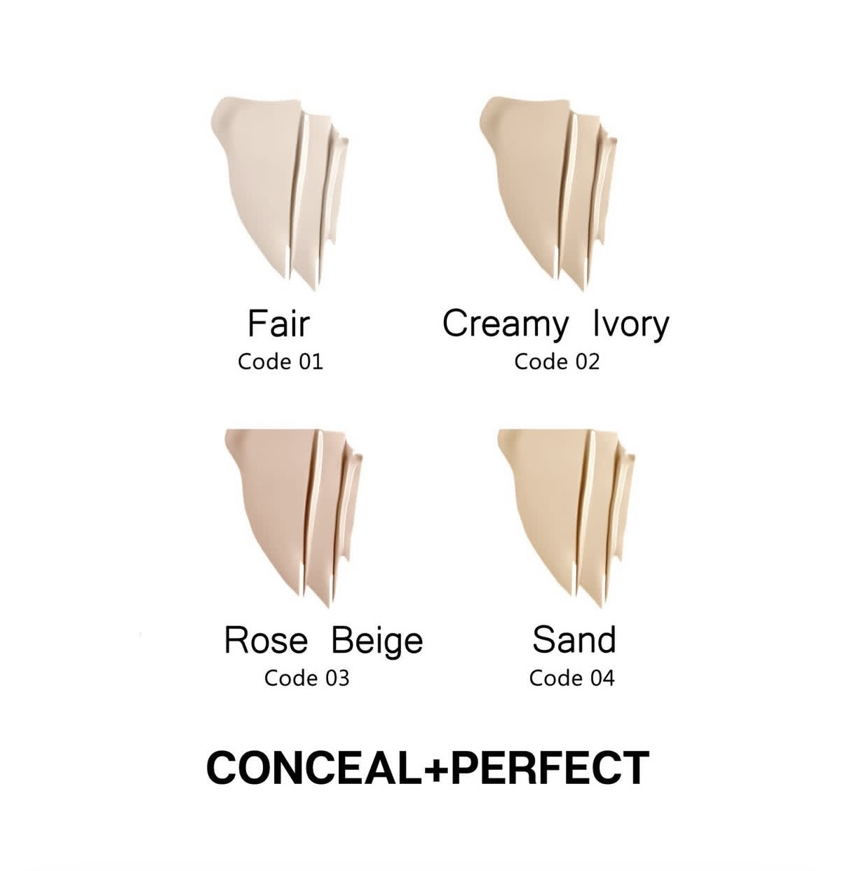 کانسیلر سیوره دارای 4 طیف رنگی متنوع است و شما میتوانید بر اساس تناژ رنگی پوستتان، یکی از رنگهای این کانسیلر را انتخاب کنید.